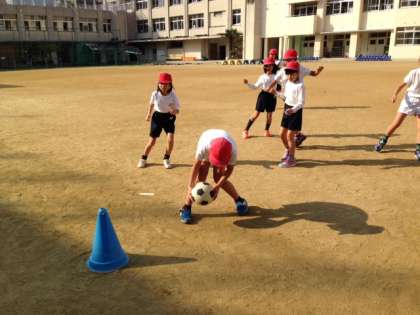 3年生は運動場でキックベースボールをしました。今日がはじめてでしたので、まだまだボールの蹴り方もぎこちないです。ですが、子どもたちは楽しんで体を動かすことができていました。