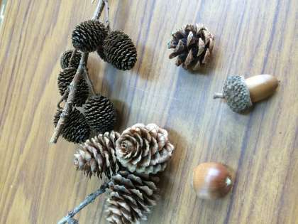 どんぐりやまつぼっくり、もみじなどいろいろあります。