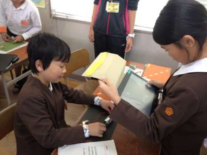 4組にて、植田先生によるICT公開授業へ向けたプレ授業が行われました。子どもたちは自分で立てた予想をもとに、「どのようなつなぎ方をすると、電気が流れ、豆電球に明かりがつくのか」の実験を行いました。実験が大好きな子どもたちは、とても楽しそうでした。