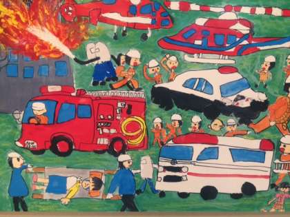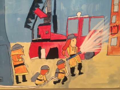 「消防の絵画」で入賞しました。この2点の作品のレプリカが、京セラドーム前にあるイオンに展示されています。