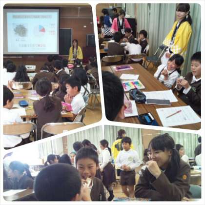 大阪産(おおさかもん)というのを、みなさんはご存知ですか?食品の産地調べをしてみると、大阪産はほとんどありませんでしたが、実は野菜やお菓子、寿司など伝統的な大阪の名品がたくさんあります。今日は、その中でも堀江が発祥のお菓子「粟おこし」についてお話していただきました。1時間目は、なぜ堀江が発祥なのか、紙しばいや映像、クイズを通して楽しく学習しました。名産「粟おこし」の試食もさせてもらいました。子どもたちからは「おいしい!!」「もっと食べたい!!」の声がたくさん聞こえてきました。