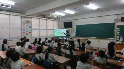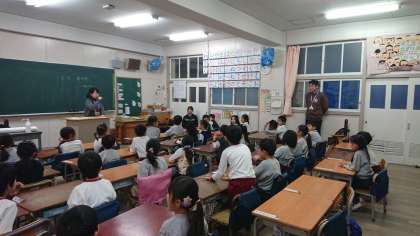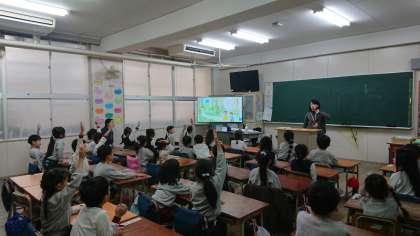あけぼのほりえこども園の園児が1年1組で授業体験をしました。