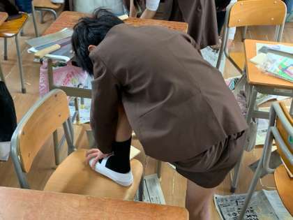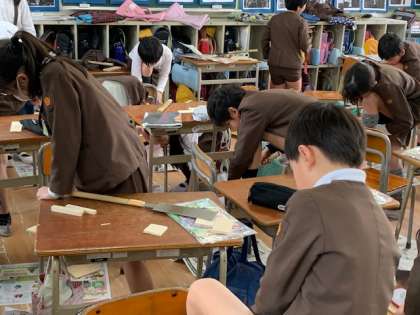 4年生は、図画工作科「ギコギコトントン」の学習でノコギリの特徴や使い方を学んでいます。