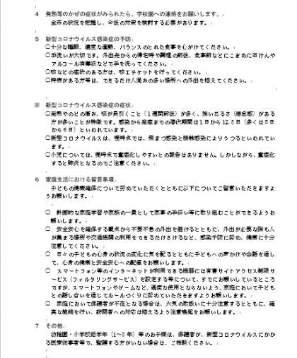 新型コロナウイルス感染症の拡大予防に向けた学校休業について