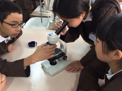 桜島の火山灰を洗い、顕微鏡で観察しました。