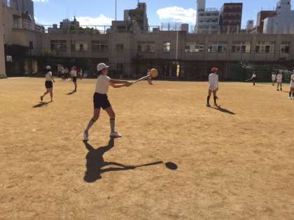 少し寒かったですが、よい天気のなか、三角ベースボールをしました。