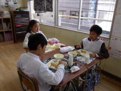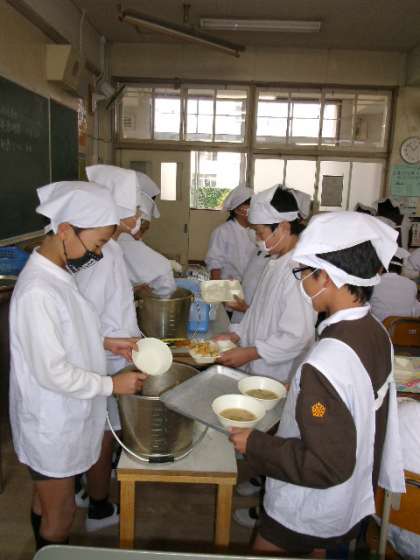 今日の給食は「カツ丼、みそ汁、ミニフィッシュ、牛乳」でした。子ども達は、大すきなカツ丼なので、みんなニコニコです。食べやすい献立だったので、とても速く食べ終わることができた給食時間でした。