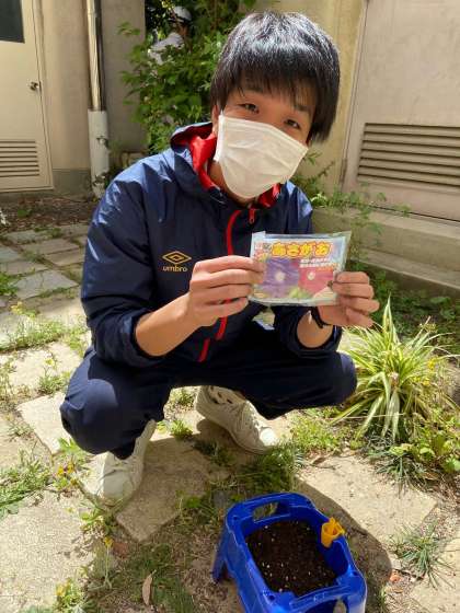 たねは わあくしいとに むしめがねで みたように おおきく かいてから うえます。