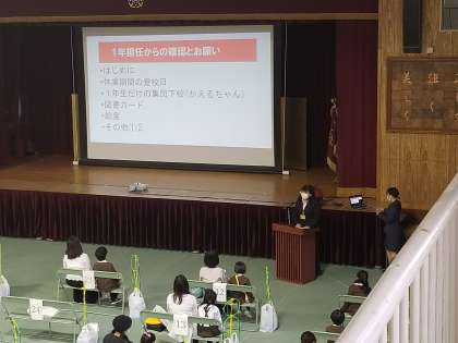 1年生担任が登校日や配布物の説明を行いました。