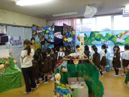 23日(日)に堀江幼稚園で開催された作品展を本校の1年生が参観しました。