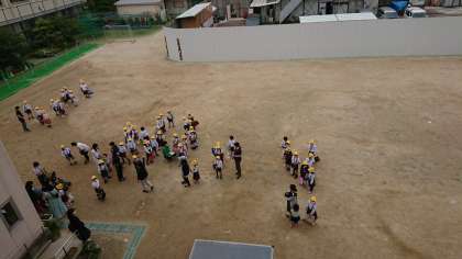 下校時は正門が密になるので、1年生のお迎えは運動場で行いました。