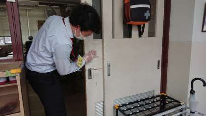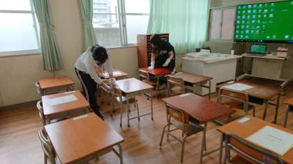 A・B・Cのそれぞれの児童が下校する度にアルコール消毒を行います。