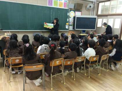 中央図書館のボランティアの方々がいろいろなおはなしの読み聞かせをしに来てくださいました。
