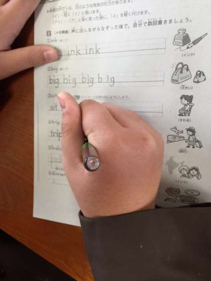 今日は、英単語を書く練習をしました。