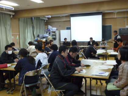 研究授業のあと、授業の内容を教職員で反省点や改善点を討議しました。