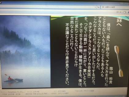 自分の好きな場面の写真を選び、本の紹介をパワーポイントを使って書きました。