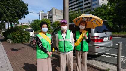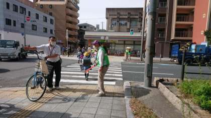 早速、地域の方も登校時の見守りを行ってくださいました。