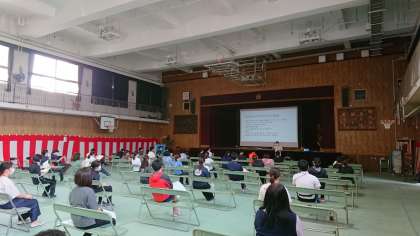 学校が再開しましたので、三密に配慮しながら教職員の防犯研修を行いました。