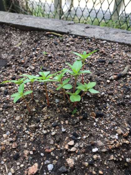 ホウセンカは無事にすくすくと育っていますが、マリーゴールドは全く生育せず。
