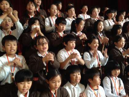 本日も講堂で、音楽交流会に向けた合同練習を行いました。本番は、いよいよ今週の金曜日です!