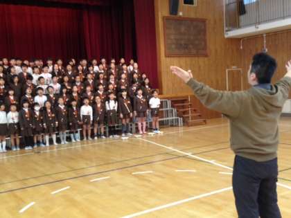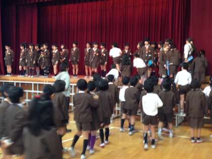 火曜日も講堂での練習でした。舞台での並び方や、入退場を速やかに行えるようにも練習をしました。日に日に、成長しています。