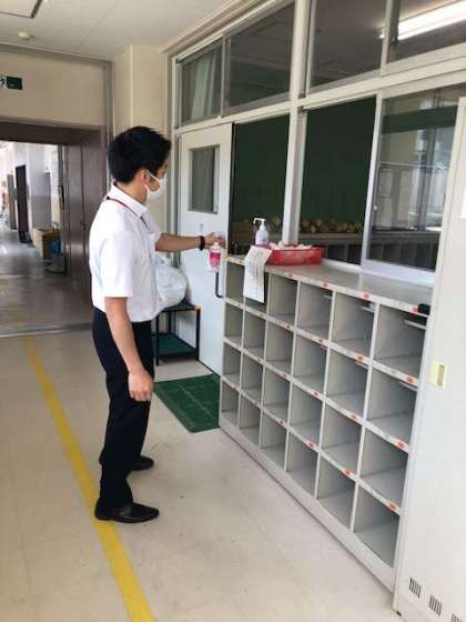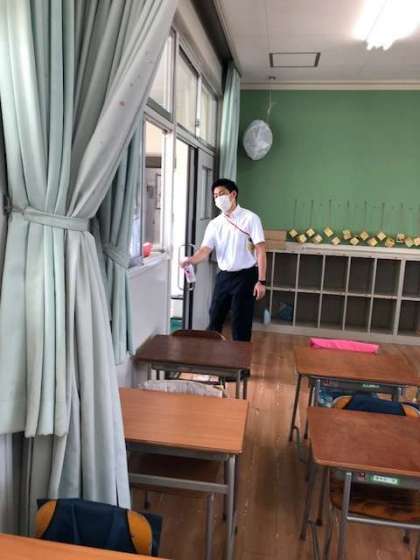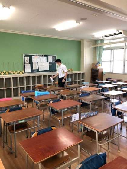 前半の入学式が終わりましたので、保護者控室も消毒しました。