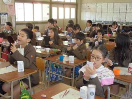 「奥歯のへこんでるところが真っ赤や」など、驚いている児童がいました。