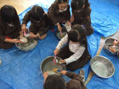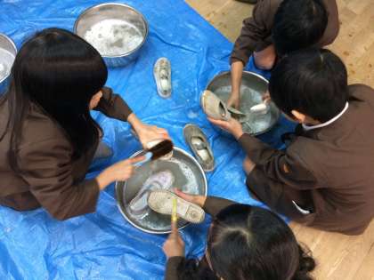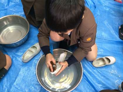 今日は、生活科『みんないっしょに』の学習で、自分のうわぐつ洗いをしました。はじめての子も、お家でしたことがある子も、一生懸命うわぐつの汚れを落としていました。冷たい水ですすぐときには、お家の人の大変さも実感していました。お家での、積極的なお手伝いにつながればいいなと思います。