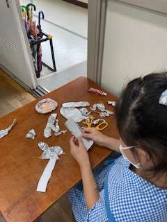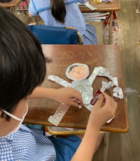 「うちゅうであそぼう」がテーマの作品づくりに取り組んでいます。