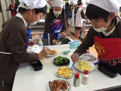班で協力して、卵焼き、ウィンナー、ゆで野菜とてもおいしそうです。