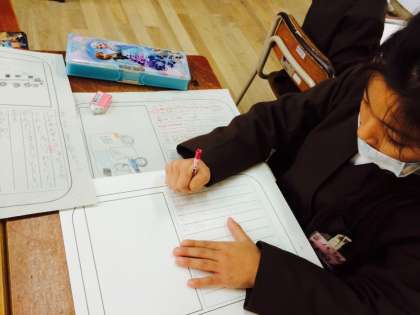 国語科「じどう車くらべ」では学習したことをいかして、じどう車ずかんをつくりました。