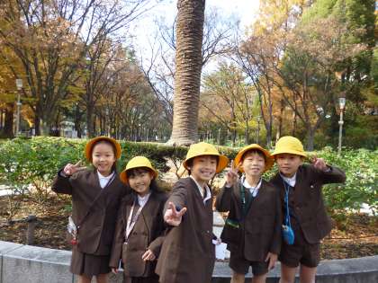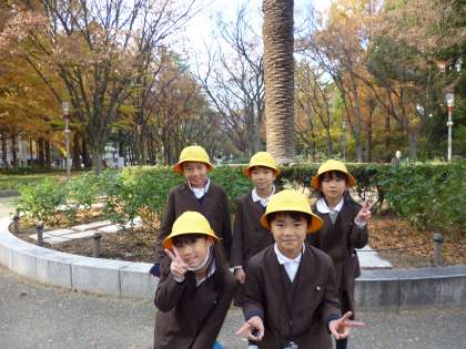 人通りや交通量の多い場所での探検だったため心配もありましたが、たくさんのボランティアの方々のご協力のもと安全に靭公園まで行くことができました。