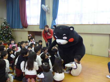 くまもんが幼稚園に来てくれ、園児たちと楽しい時間を過ごしました。園児たちは大喜びでした。いいクリスマスプレゼントなりましたね。