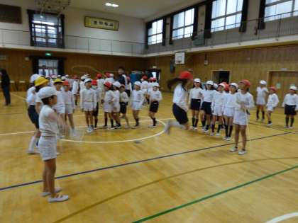 1つ目の競技は大縄跳びです。5分間で八の字を何回跳べたか数えました。