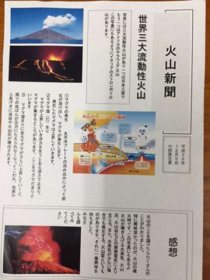 大地のつくりで調べたことをもとに、パソコンで新聞にまとめました。