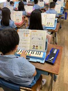 久しぶりの鍵盤ハーモニカを使った音楽の授業です。子どもたちはとても楽しそうに「かっこう」の練習に取り組んでいました。