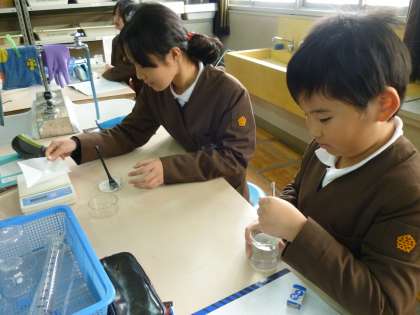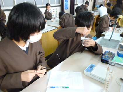 理科で、もののとけ方の実験をしています。