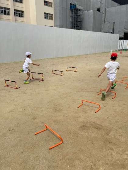 少しずつ少しずつですが、過ごしやすい気温になってきたように感じます。体育の授業も、活動しやすくなってきました。ラダーやミニハードルを使って走る練習をしました。水分補給もしっかりして、元気いっぱい活動する姿が見られました。