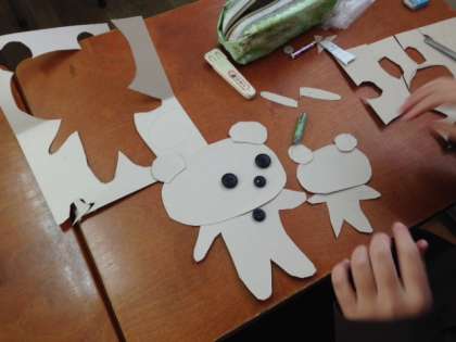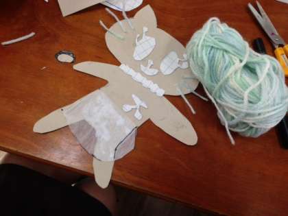 ボール紙や、自分で選んだ材料を上手に組み合わせ、「はん」をつくっています。自分でつくったキャラクターに名前をつけ、どんな物語かまで考えて聞かせてくれる子どももいました。