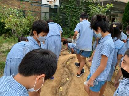 理科の時間に土山を使って「流れる水にはどのようなはたらきがあるのだろうか。」という実験をしました。
