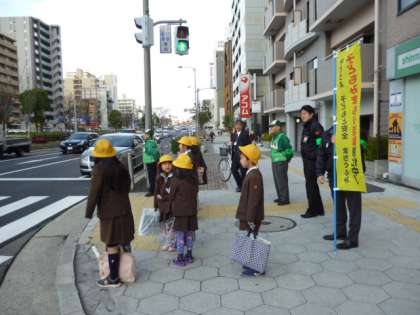 見守り隊のみなさんと西警察の方々が、通学路の大きな交差点や地下道に立っていただき、子どもたちの安全を見守っていただきました。寒い中、子どもたちのためにありがとうございます。