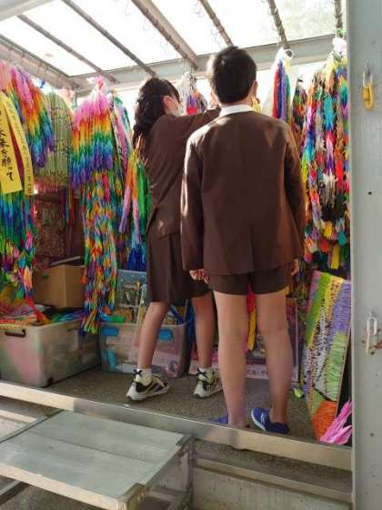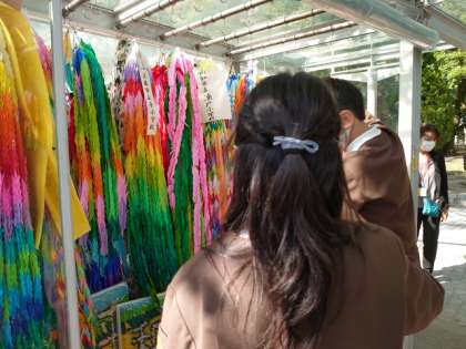 全校児童で折った折り鶴を捧げました。