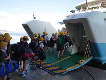 わずか10分間の船旅ですが、潮の香りを感じています。