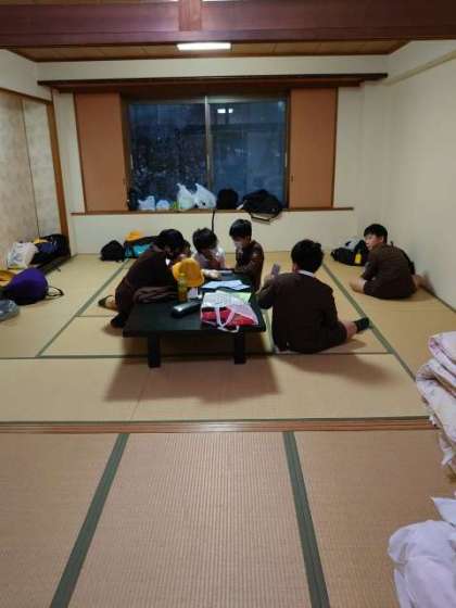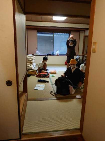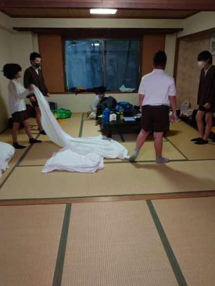 いつもなら起床後に全員で行う朝の会ですが、混雑を避けるために各部屋でしています。