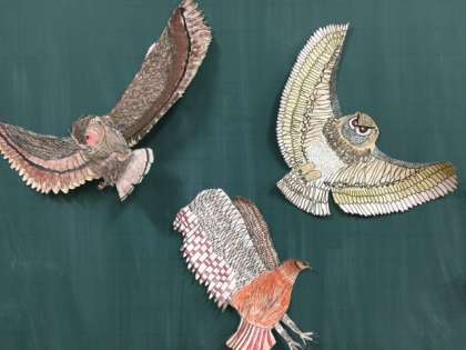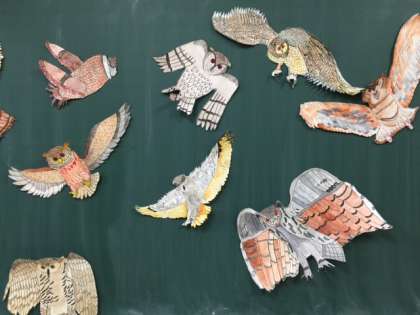 来週、夜の森の情景を描き、その森の中にこのミミズクを貼ります。