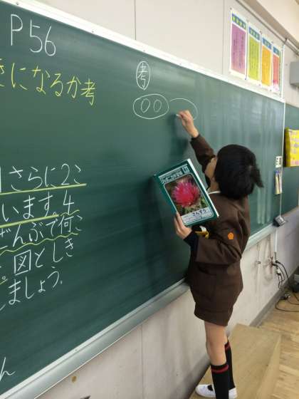 ノートに書いた自分の考えを、黒板に書き表し、クラスのみんなに発表することができました。