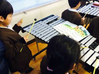 今日、てっきん・グロッケン担当の子は音楽室に行きました。