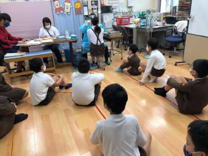 ソーシャルディスタンスのため、保健室に入る人数を制限して行っています。