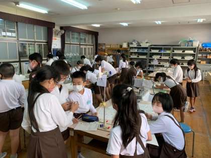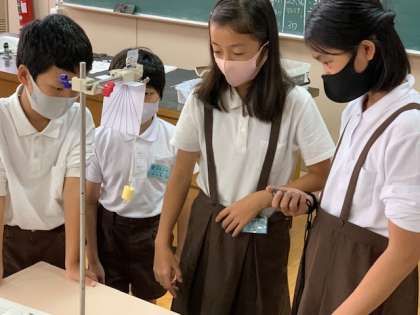 子どもたちは、正確な実験結果を導き出そうと、グループのメンバーと協力して真剣に取り組んでいます。