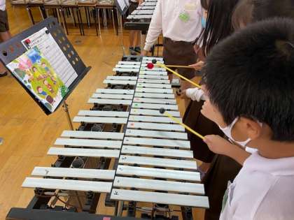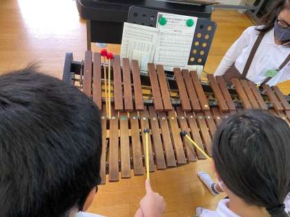 マレットの固さによって音の響きが変化することを木琴と鉄琴を使って感じることができました。